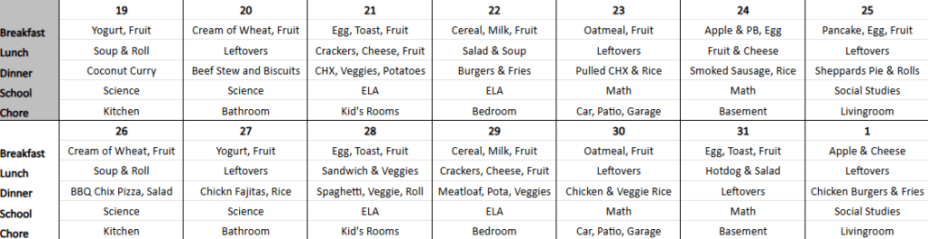 I do need to make more effort in the next few weeks to eat more veggies. I like to hide them in our other foods. I cut them up small and add them to meat, pasta, sauces, gravy, etc. My kids help with menu planning, food purchasing, and meal preparation. They at least see and know how to add veggies to their recipes that increase the nutritional value. Even if I’m not 100% perfect in what I serve or eat, they still learn. Also, nobody is perfect!