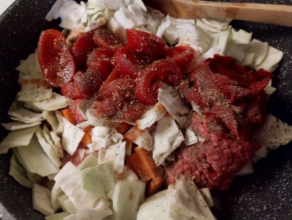 I was going to make cabbage rolls but… I ended up taking the easy route. Instead I made a simple but healthy dish that’s good when the weather is cold.